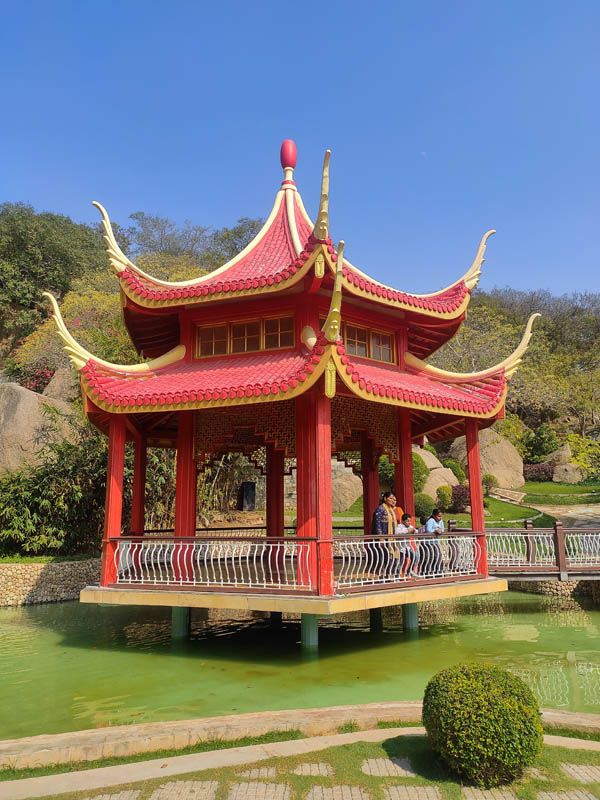 At the main entrance, we quickly usher into another queue. An uber cool red bus, with an open top for the driver, picks us up. The actual tour of Ramoji Film city begins now. The commentator greeted us. There would be various stops, at each place, we are to deboard the bus, see the place and hop on the next bus. The sequence would continue till the final stop, which would then drop us back to the main entrance.