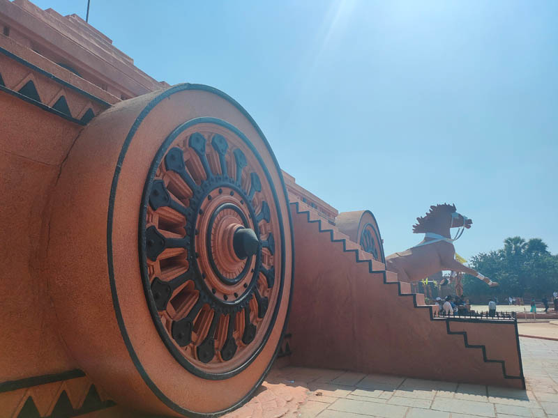 Along the way we were shown the Central jail, hospital, police station, gardens, all being used in famous Bollywood and regional movies, which our team seemed to know. The first stop is the grand jury or the central darbar of the Mahabharata. The statues, the palatial palace, give you the look and feel of being inside a royal darbar. We took the next bus. Next stop was the Railway station. A actual train was placed at a make shift station. Seemingly the movie, Chennai Express was shot here. It was mighty surprise to see a movie choreographer showing his dance moves and the crowd promptly joined in. We all joined in. Bollywood tracks were being played at full blast and the choreographer led the flash mob into frenzied dance sequences. The crowd enjoyed thoroughly.